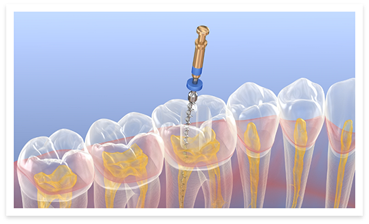 - Infected and dead tissue will be removed from the canals and pulp chamber.